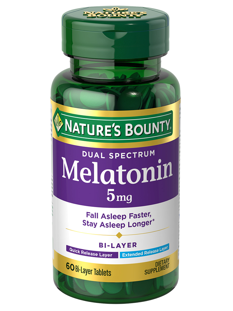 Nature's Bounty® Dual Spectrum Melatonin has taken sleep support to a new level for anyone experiencing occasional sleeplessness.* This clinically studied ingredient, nutritionally supports restful sleep patterns.* Each Dual Spectrum Melatonin tablet has two layers: a quick release and extended release in one convenient tablet.