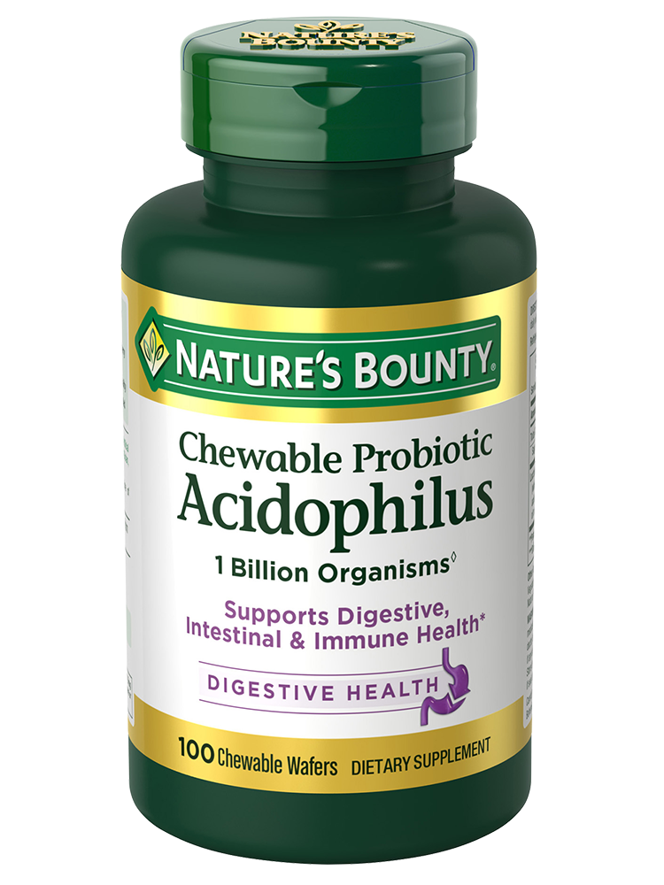 Acidophilus supports a favorable environment for the absorption of nutrients, encourages intestinal microflora balance, and maintains the healthy functioning of the intestinal system.* Intestinal microflora imbalance may lead to inefficient digestion.* Each strawberry flavored, milk-free chewable wafer contains one billion microorganisms at the time of manufacture.