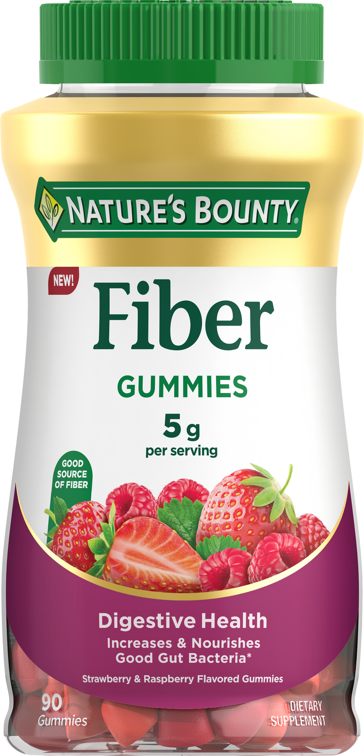 Your digestive tract is alive with trillions of beneficial bacteria. Nature’s Bounty® Fiber Gummies are a great-tasting way to nourish these good bacteria while increasing your daily fiber intake.* Each serving contains 5 g of a Prebiotic Fiber blend to help your gut microbes flourish, supporting a healthy digestive system.* Bursting with natural Strawberry and Raspberry flavors, these gummies are an easy, delicious addition to your routine.