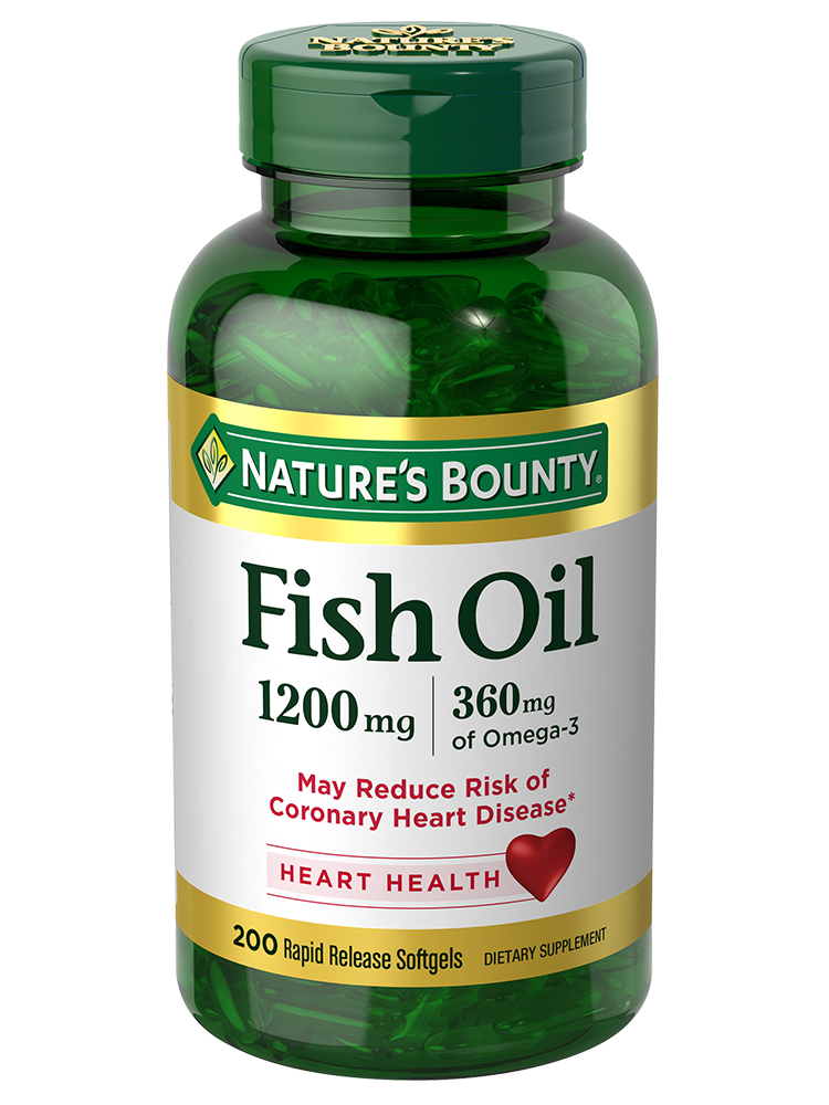 Nature's Bounty® Fish Oil 1200 mg contains EPA and DHA, two Omega-3 fatty acids that help support and maintain the health of your cardiovascular system.* Omega-3 fatty acids are considered “good” fats important for cellular, heart and metabolic health and help maintain triglyceride levels already within a normal range.*