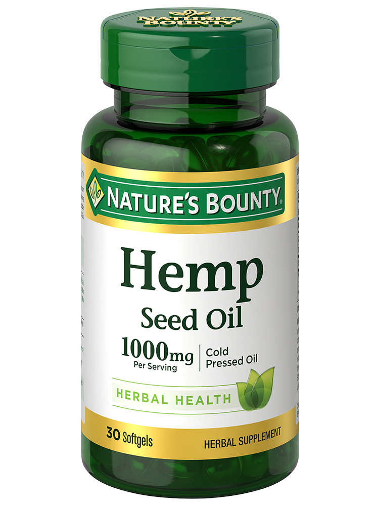 Nature’s Bounty® Hemp Seed Oil softgels contain 1000 mg of organic, cold pressed oil per serving to support overall wellness.* This Non-GMO, herbal supplement formula is free of artificial color and flavors, and made in the USA with select ingredients from around the world. As the #1 Herbal Supplement Brand†, Nature’s Bounty® Hemp Seed Oil softgels are guaranteed quality and laboratory tested. For best results, we recommend that adults take one (1) softgel daily, preferably with a meal.