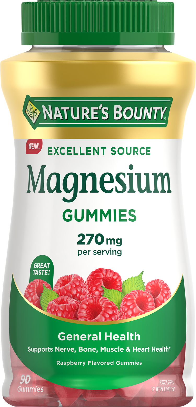 Nature’s Bounty Magnesium Gummies are an easy and delicious way to increase your daily intake of Magnesium. The essential nutrient, which plays an important role in the body’s normal function, provides whole-body support by helping to maintain nerve, muscle, and heart health while supporting cellular energy metabolism.* In addition, magnesium is essential for bone structure and bone mineralization, helping to maintain healthy bones in adults.* While magnesium is found in certain foods, the National Institutes of Health (NIH) has reported that many Americans do not get the recommended daily intake of Magnesium through their diet alone. Nature’s Bounty Magnesium Gummies help bridge the gap by providing 64% of the Daily Value of this essential nutrient.* Each delicious raspberry-flavored serving contains 270mg of Magnesium as Magnesium Citrate, a highly bioavailable form of Magnesium.* For additionall wellness support, our Magnesium Gummies are suitable for vegetarians and are non-GMO, gluten-free, lactose-free, and contain no artificial sweeteners.