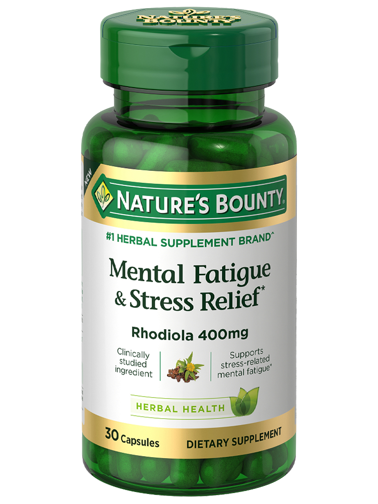 Nature’s Bounty Mental Fatigue & Stress Relief capsules help support occasional stress-related mental fatigue.* Our innovative stress management formula contains 400 mg of Rhodiolife, a clinically studied ingredient made from Rhodiola that helps support stress relief and the ability to deal with mental and physical stress.* In a convenient 1-per-day capsule, Nature’s Bounty Mental Fatigue & Stress Relief builds the body's normal resistance to stress while supporting your ability to stay calm.* Rhodiola root is known as an adaptogen, a plant that helps the body adapt to and resist stress.* Dried rhodiola extract has been used for centuries to relieve stress and reduce fatigue.* Our Rhodiola supplement is also 100% drug free and Non-GMO, making it a great way to support stress-related mental fatigue, which is the kind of fatigue brought on by the stress of performing normal, everyday tasks.* Whether you’re feeling overwhelmed at work, home, or school, make Nature’s Bounty Mental Fatigue & Stress Relief capsules a part of your daily routine so you can feel your best, no matter what life throws your way.*