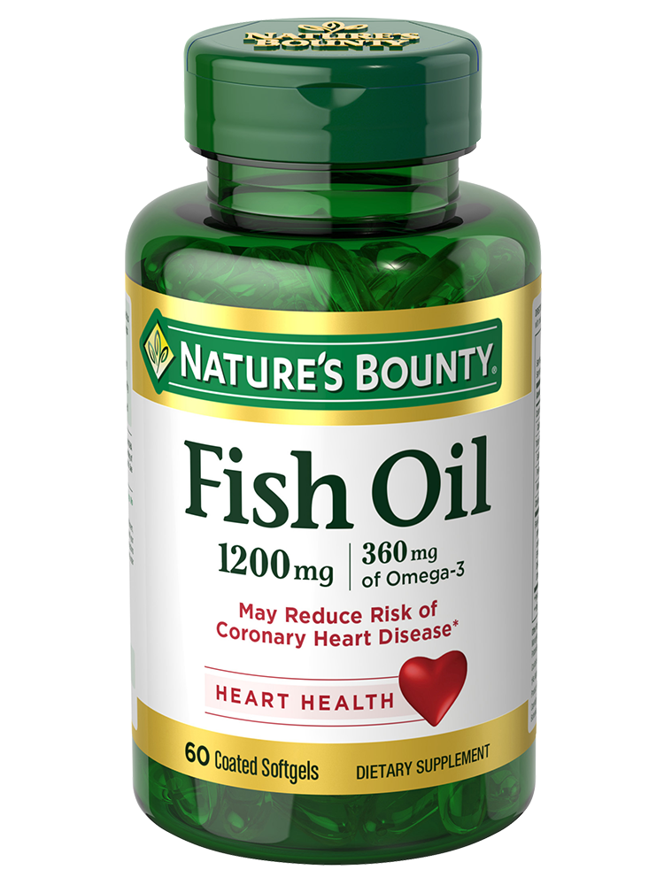 Nature's Bounty® Fish Oil 1200 Fish Oil contains EPA and DHA which help support and maintain the health of your cardiovascular and circulatory system.* Omega-3 fatty acids are considered “good” fats and help maintain triglyceride levels already within a normal range.* Fish Oil is coated to minimize the aftertaste and fish burps!